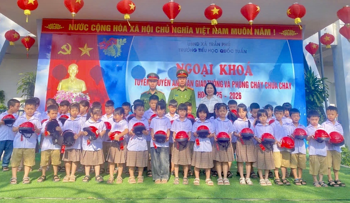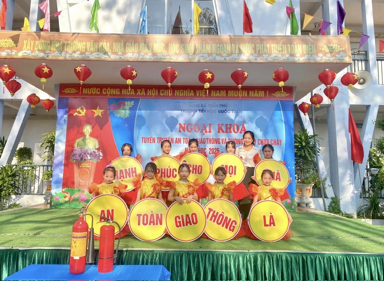 Trường Tiểu học Quốc Tuấn vừa phối hợp với Công an xã Trần Phú tổ chức buổi ngoại khóa tuyên truyền về “An toàn giao thông và Phòng cháy chữa cháy” dành cho cán bộ, giáo viên, nhân viên và toàn thể học sinh nhà trường.