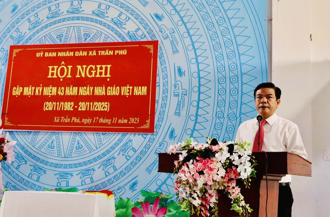 Chiều ngày 17/11, Ủy ban nhân dân (UBND) xã Trần Phú đã long trọng tổ chức Hội nghị gặp mặt kỷ niệm 43 năm Ngày Nhà giáo Việt Nam (20/11/1982 – 20/11/2025). Hội nghị không chỉ là dịp ôn lại truyền thống, mà còn là sự kiện trọng thể để toàn xã tri ân, tôn vinh những người "lái đò" đã và đang tận tâm cống hiến cho sự nghiệp trồng người.