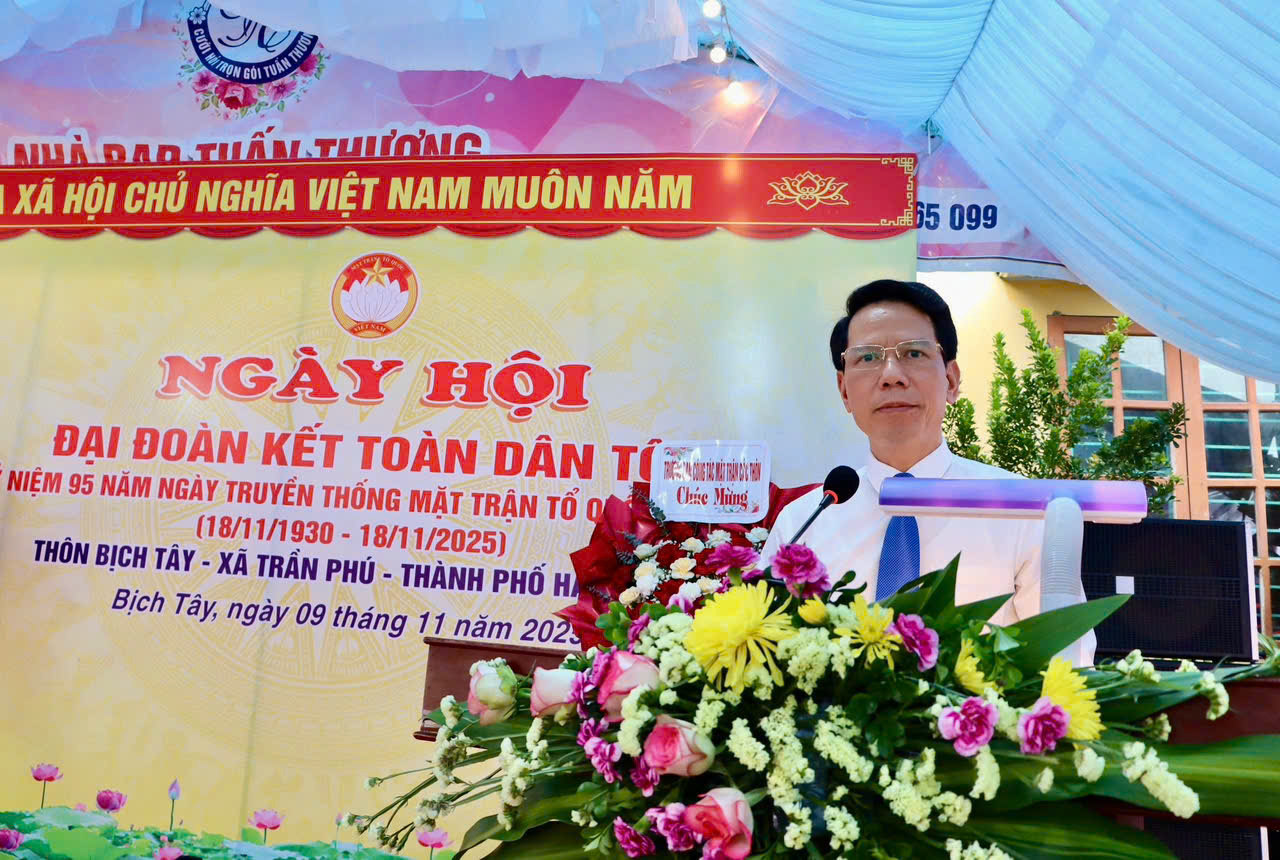 Chiều ngày 9/11, thôn Bịch Tây đã tưng bừng tổ chức Ngày hội Đại đoàn kết toàn dân tộc, kỷ niệm 95 năm Ngày thành lập Mặt trận Dân tộc Thống nhất Việt Nam (18/11/1930 – 18/11/2025). Ngày hội không chỉ là dịp ôn lại truyền thống, mà còn là sự kiện ghi nhận những thành tích nổi bật của thôn, đặc biệt trong công tác giảm nghèo và xây dựng đời sống văn hóa.