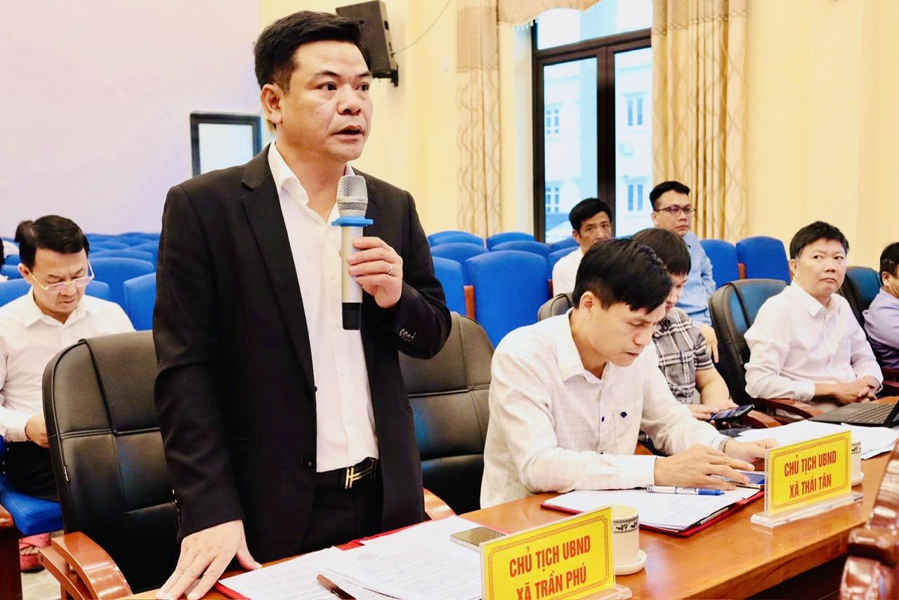 Đồng chí Vũ Quang Hoàng - Chủ tịch UBND xã Trần Phú phát biểu tại hội nghịLãnh đạo UBND xã Trần Phú đã báo cáo với đồng chí Phó Chủ tịch UBND thành phố về những khó khăn, vướng mắc và đề xuất, kiến nghị về những vấn đề liên quan đến công tác giải phóng mặt bằng các dự án hiện đang triển khai. Theo đó, Dự án khu dân cư mới thôn Kinh Dương có tổng diện tích 28.127 m², đến nay đã có 12/20 hộ dân đồng thuận ký phương án và nhận tiền hỗ trợ, bồi thường, hiện còn 8 hộ chưa đồng thuận.