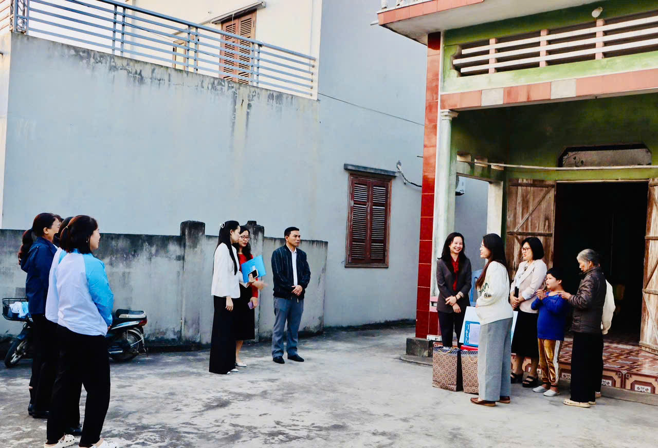Đồng chí Trần Thu Hương - Chủ tịch Hội LHPN thành phố và đồng chí Phùng Thị Mai Anh - Phó Bí thư Thường trực Đảng ủy trao quà cho các cháu Yến Vy và Yến NhiĐồng chí Chủ tịch Hội LHPN thành phố và đồng chí Phó Bí thư Thường trực Đảng ủy xã đã thăm và tặng quà cho hai chị em cháu Đinh Thị Yến Vy (sinh năm 2013) và Đinh Thị Yến Nhi (sinh năm 2015) ở thôn Hoàng Xá. Hoàn cảnh của hai cháu khiến cả đoàn không khỏi xót xa. Cách đây 3 năm, biến cố lớn ập đến khi bố các cháu qua đời do tai nạn giao thông, mẹ bỏ đi, để lại hai chị em bơ vơ sống nương tựa vào bà nội già yếu, nay đã ngoài 80 tuổi. Khó khăn chồng chất khó khăn khi Yến Nhi còn mang trong mình căn bệnh suy thận.