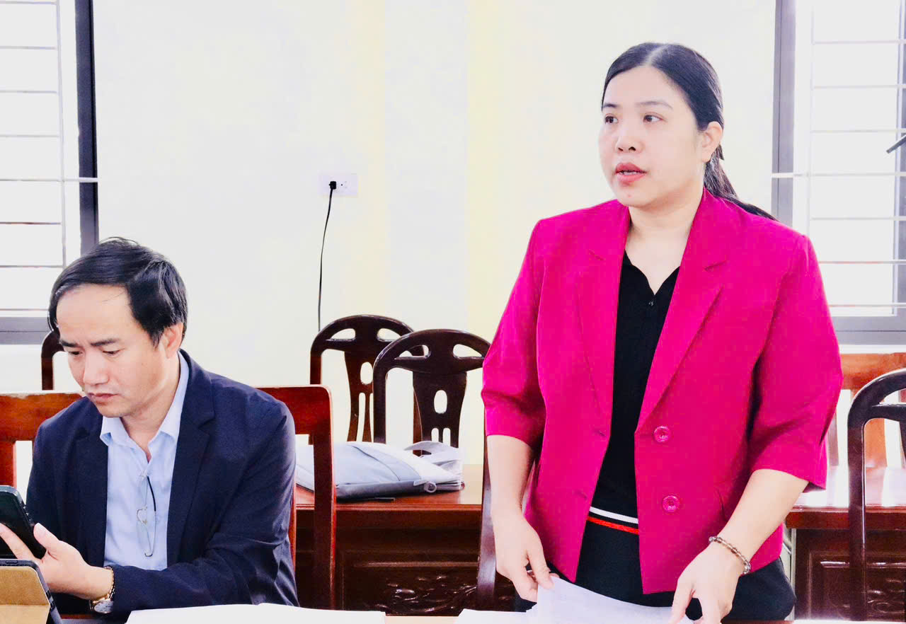 Đồng chí Hoàng Thị Thu - Trưởng phòng Văn hóa - Xã hội xã phát biểu