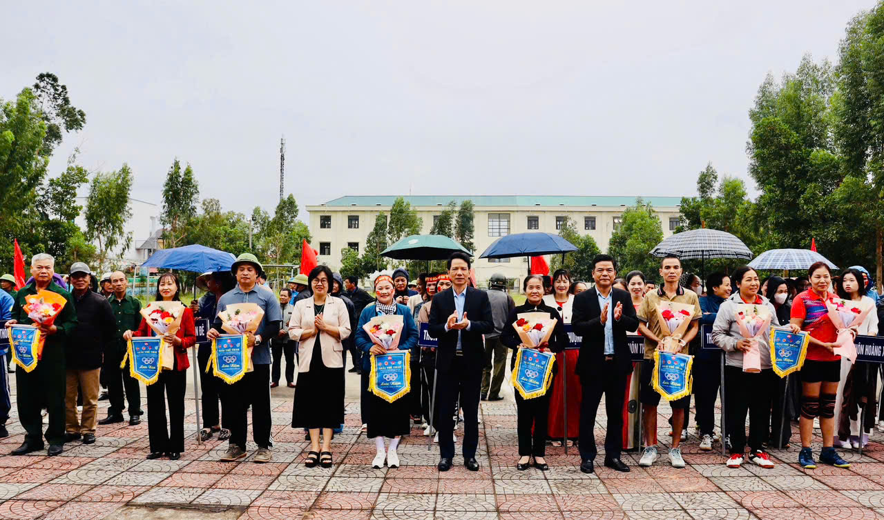 Đồng chí Đồng Xuân Sơn - Bí thư Đảng ủy, Chủ tịch HĐND tặng hoa chúc mừngDự, động viên giải có các đồng chí: Đồng Xuân Sơn – Bí thư Đảng ủy, Chủ tịch HĐND xã; Phùng Thị Mai Anh – Phó Bí thư Thường trực Đảng ủy xã; Vũ Quang Hoàng – Phó Bí thư Đảng ủy, Chủ tịch UBND xã.