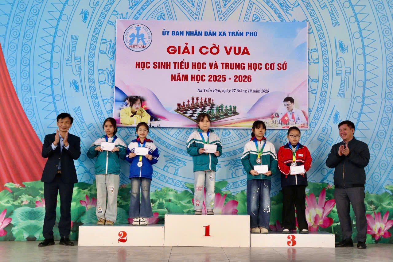Các kỳ thủ đang tham gia thi đấuGiải Cờ vua học sinh Tiểu học và THCS xã Trần Phú năm học 2025 – 2026 đã khép lại và thành công rực rỡ. Thông qua giải đấu, Ban tổ chức sẽ tuyển chọn những kỳ thủ xuất sắc nhất để thành lập đội tuyển, tiếp tục bồi dưỡng tham dự giải đấu cấp thành phố trong ngày 12 và 13/1/2026 tới. Đây không chỉ là thành tích thể thao mà còn là minh chứng cho sự quan tâm sâu sắc của địa phương đối với sự phát triển toàn diện Đức - Trí - Thể - Mỹ cho thế hệ trẻ.