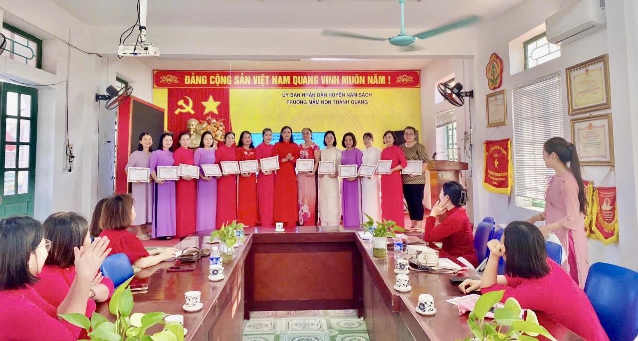 Tổng kết Hội thi giáo viên giỏicấp trườngHoạt động trọng tâm là việc đẩy mạnh thi đua trong công tác chuyên môn thông qua Hội thi Giáo viên dạy giỏi cấp trường. Hội thi không chỉ là dịp để các cô giáo thể hiện năng lực, áp dụng đổi mới phương pháp giáo dục mà còn là cơ hội để học hỏi, trao đổi kinh nghiệm, từ đó góp phần nâng cao chất lượng chăm sóc và giáo dục trẻ.