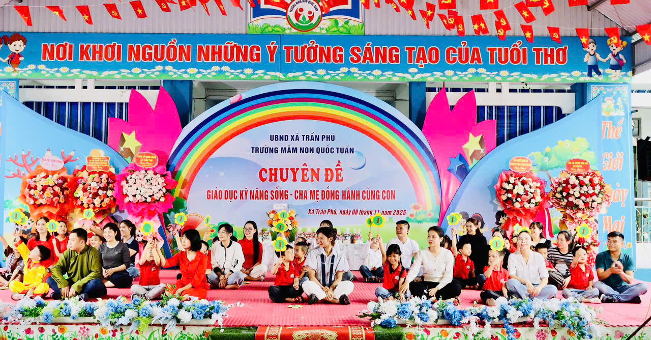 Sáng ngày 8/11, Trường Mầm non Quốc Tuấn đã được chọn làm điểm tổ chức chuyên đề cấp xã với chủ đề thiết thực: "Giáo dục kỹ năng sống - Cha mẹ đồng hành cùng con". Chuyên đề đã diễn ra thành công rực rỡ, truyền tải nhiều thông điệp ý nghĩa về an toàn – hạnh phúc trong nhà trường, góp phần nâng cao chất lượng chăm sóc giáo dục toàn diện cho trẻ mầm non.