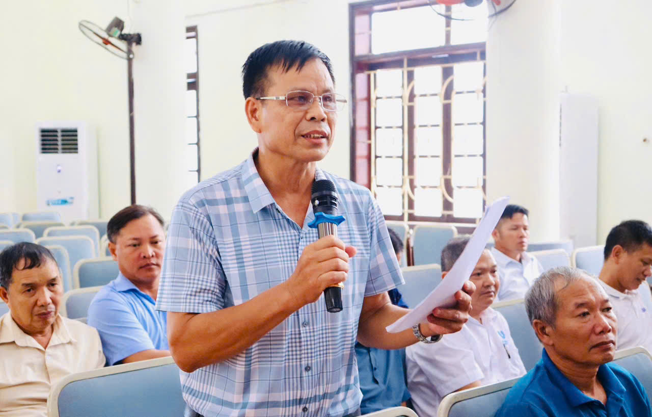 Đồng chí Ngô Bá Cường - Bí thư Chi bộ thôn Bịch Đông phát biểu tại hội nghịHội nghị cũng lắng nghe nhiều đề xuất, kiến nghị từ các đồng chí Bí thư chi bộ, trưởng thôn, trong đó tập trung vào những vấn đề như: Liên quan đến mức trích nộp đóng đảng phí tại các chi bộ thôn; thu thuế phi nông nghiệp; đề nghị quan tâm đến công tác diệt chuột; vấn đề rác thải mất vệ sinh môi trường; tăng cường công tác giải tỏa, đảm bảo trật tự an toàn giao thông; đề nghị cần xử lý quyết liệt hơn trong sai phạm về xây dựng; đề nghị mắc thêm cụm loa mới để phục vụ cho công tác tuyên truyền; đề nghị lắp lại đường điện ánh sáng khu vực dốc đê Kinh Dương; quan tâm đảm bảo an toàn cho các cháu học sinh đi học trên các tuyến đường đang thi công…