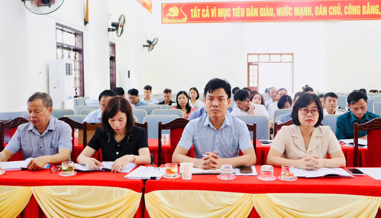 Các đại biểu tham dự hội nghịVề phát triển kinh tế - xã hội, sản xuất nông nghiệp tiếp tục được quan tâm chỉ đạo: hướng dẫn phòng trừ sâu bệnh, điều tiết nước, phun thuốc trừ sâu bằng thiết bị bay trên diện tích lớn; công tác chăn nuôi, tiêm phòng được triển khai đồng bộ. Công tác giải phóng mặt bằng cho các dự án hạ tầng như đường dẫn cầu Kênh Vàng và khu dân cư Kinh Dương được đẩy nhanh; chiến dịch làm giàu, làm sạch cơ sở dữ liệu đất đai hoàn thành và vượt chỉ tiêu thành phố giao. Tổng thu ngân sách trong tháng đạt 12,3 tỷ đồng, tổng chi 11,8 tỷ đồng.