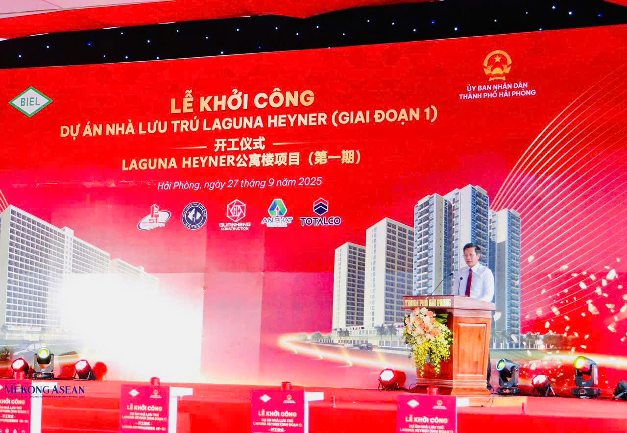 Đồng chí Lê Anh Quân - Phó Chủ tịch Thường trực UBND thành phố phát biểu tại lễ khởi công (Ảnh TL)Phát biểu tại lễ khởi công, ông Lê Anh Quân, Phó Chủ tịch Thường trực UBND TP Hải Phòng cho biết, việc giải quyết bài toán nhà ở, đảm bảo điều kiện sống ổn định cho công nhân, người lao động luôn là một trong những ưu tiên hàng đầu của Đảng bộ và chính quyền thành phố. Chúng tôi luôn xác định rằng, để người lao động có thể yên tâm làm việc, cống hiến lâu dài, góp phần vào sự phát triển bền vững của doanh nghiệp và thành phố, trước hết họ phải được "an cư". Chủ trương nhất quán của thành phố là khuyến khích, tạo mọi điều kiện thuận lợi để các doanh nghiệp đầu tư xây dựng các thiết chế văn hóa, xã hội, đặc biệt là nhà ở cho công nhân.