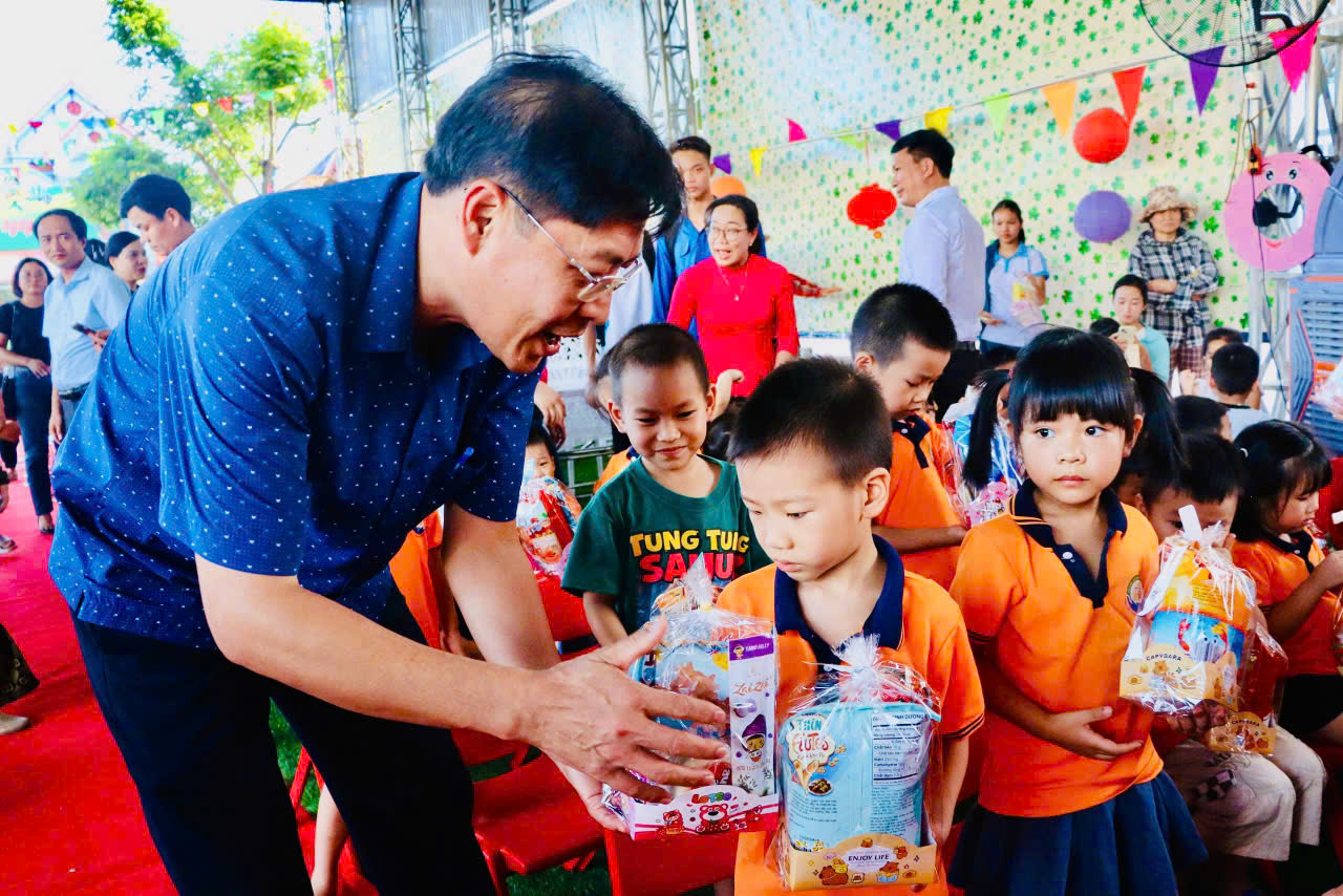 Đồng chí Đồng Xuân Sơn - Bí thư Đảng ủy, Chủ tịch HĐND xã tặng quà cho các bé tại trường Mầm non Thanh QuangTham dự và chung vui cùng các cháu có đồng chí Đồng Xuân Sơn – Bí thư Đảng ủy, Chủ tịch HĐND xã; đồng chí Phùng Thị Mai Anh – Phó Bí thư Thường trực Đảng ủy xã; đồng chí Nguyễn Văn Ngọc - Ủy viên Ban Thường vụ Đảng ủy, Phó Chủ tịch HĐND xã; đồng chí Lê Hải Hà - Phó Chủ tịch UBND xã, cùng lãnh đạo một số ban, ngành, đại diện doanh nghiệp, đông đảo phụ huynh và tập thể cán bộ, giáo viên, nhân viên Trường Mầm non Thanh Quang.