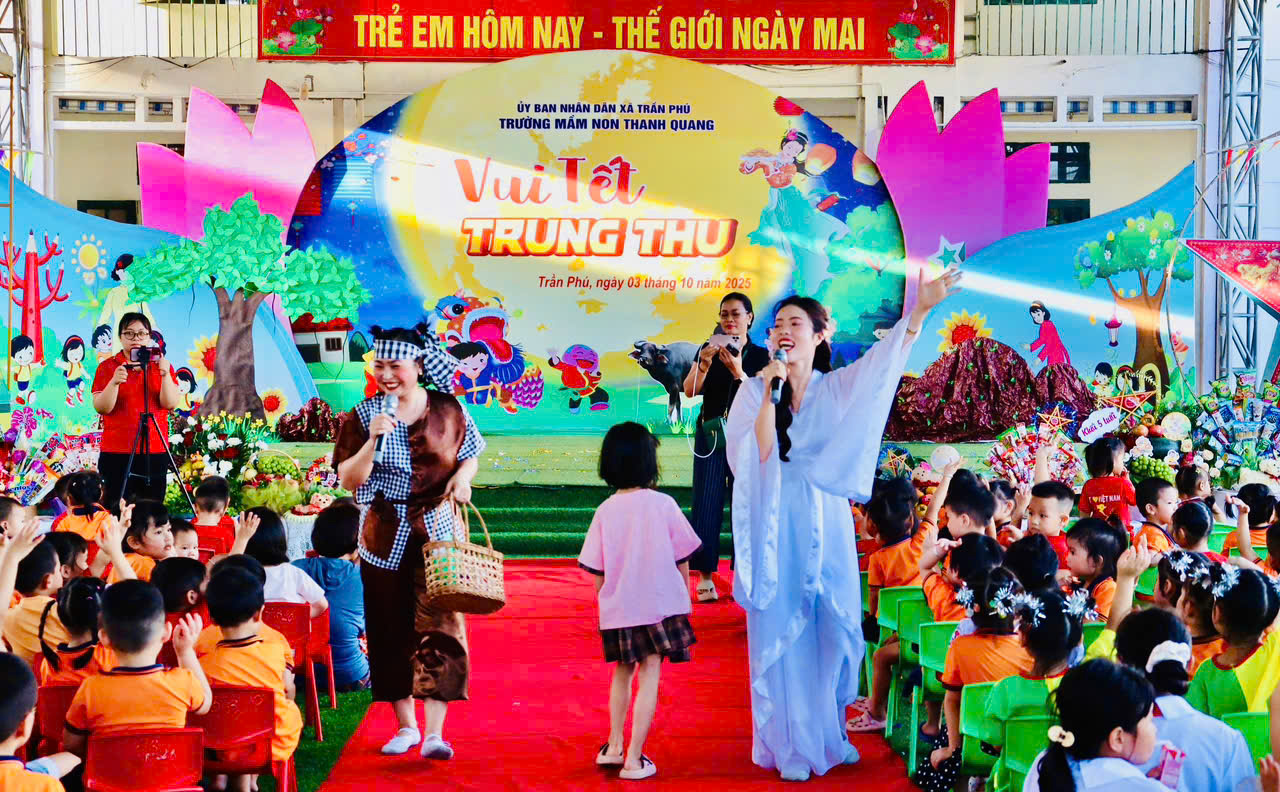 Các bé trường mầm non Thanh Quang vui trung thu cùng chú Cuội, chị HằngChương trình diễn ra với nhiều hoạt động sôi nổi và giàu ý nghĩa, tạo không gian gắn kết giữa cô và trò. Các em nhỏ được thưởng thức tiết mục múa lân sôi động, tham gia giao lưu với chú Cuội, chị Hằng, hòa mình vào những bài múa hát, trò chơi đố vui hấp dẫn, phá cỗ trông trăng. Đặc biệt, lãnh đạo xã, các doanh nghiệp trên địa bàn, cùng phụ huynh và nhà trường đã trao nhiều phần quà động viên, khích lệ tinh thần học tập, rèn luyện của các em.
