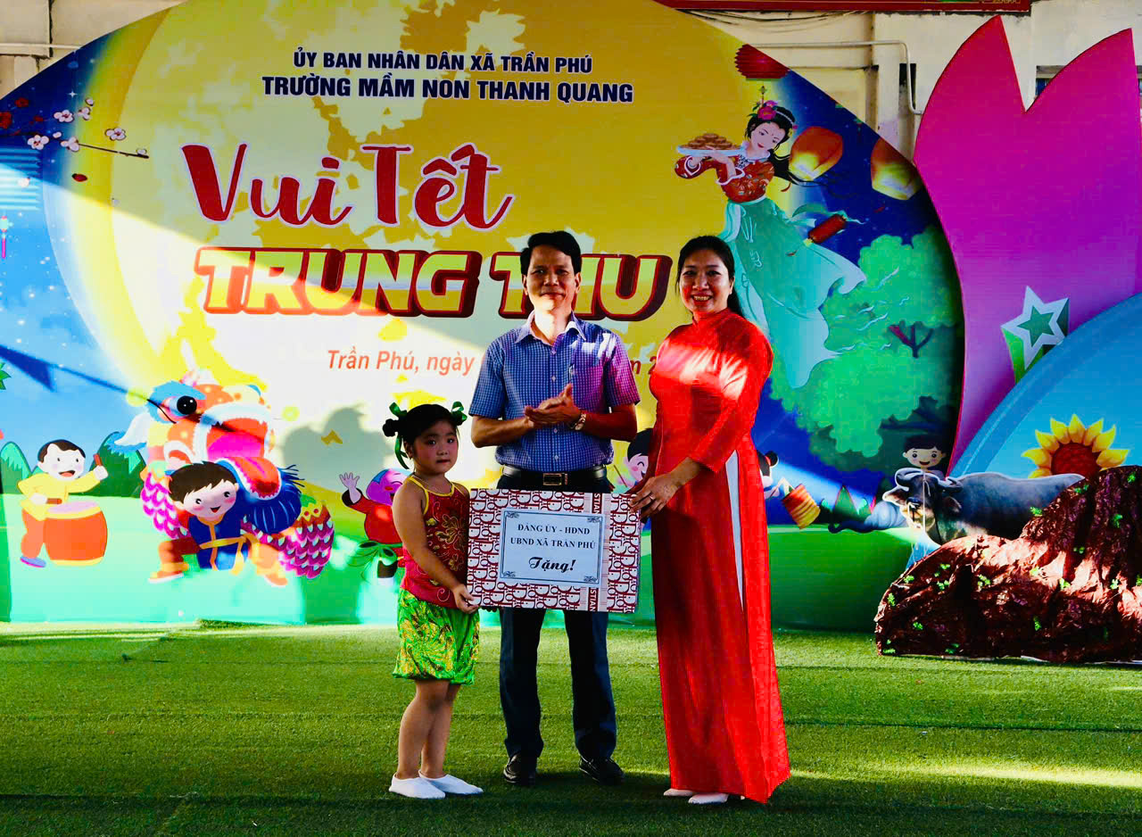 Đồng chí Nguyễn Văn Ngọc - Phó Chủ tịch HĐND xã trao quà cho các cháu thiếu nhiChương trình “Vui Tết Trung thu” tại Trường Mầm non Thanh Quang cùng các hoạt động tặng quà cho học sinh có hoàn cảnh khó khăn trên địa bàn xã đã góp phần mang lại một mùa trăng trọn vẹn yêu thương, lan tỏa thông điệp nhân văn về sự quan tâm, chăm sóc dành cho trẻ em – những chủ nhân tương lai của quê hương, đất nước.