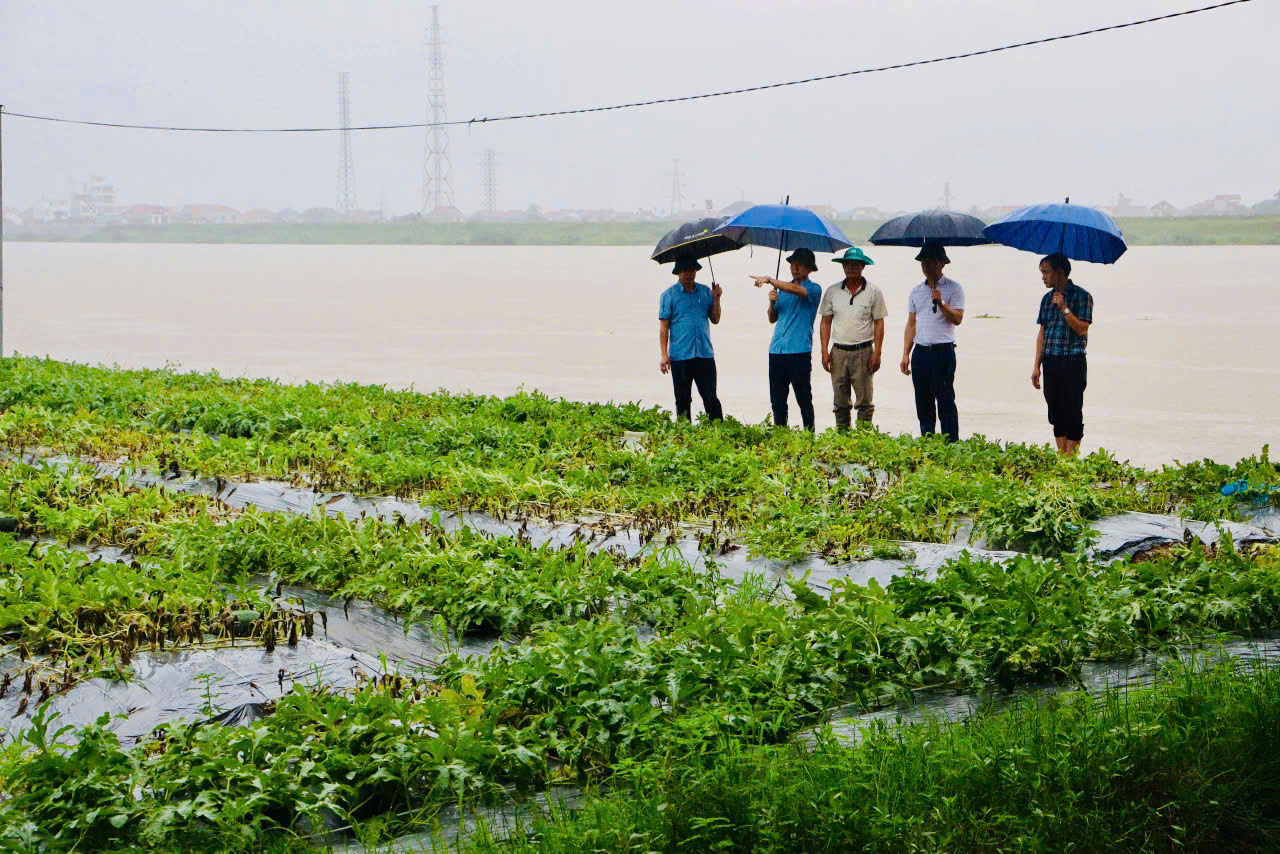 Diện tích chuối nhà anh Hải bị ngậpCũng chịu ảnh hưởng nặng, hộ chị Phạm Thị Hà ở thôn Tông Phố có 2 mẫu dưa trồng trên đất bãi ngoài đê, vụ này “chắc cũng khó thu hoạch”. Những ngày qua, nước lũ liên tục dâng, tuy không ngập trắng như năm trước nhưng toàn bộ diện tích dưa đang giai đoạn phát triển quả có nguy cơ héo và chết do úng. “Đầu tư cho mỗi sào 3 triệu đồng, sơ sơ gia đình đã mất vài chục triệu đồng. Nhìn diện tích dưa ngập úng mà xót”, chị Hà chia sẻ.